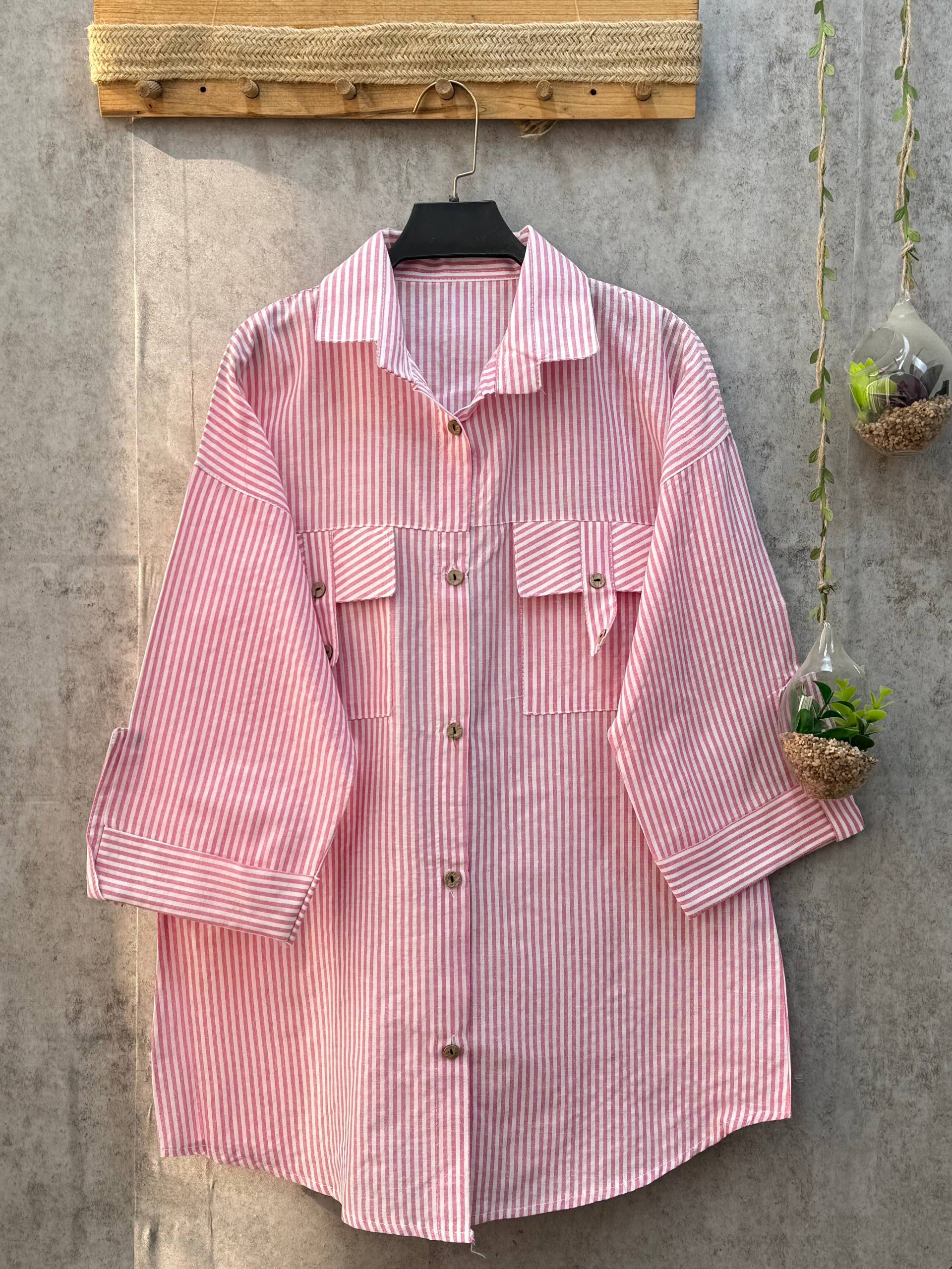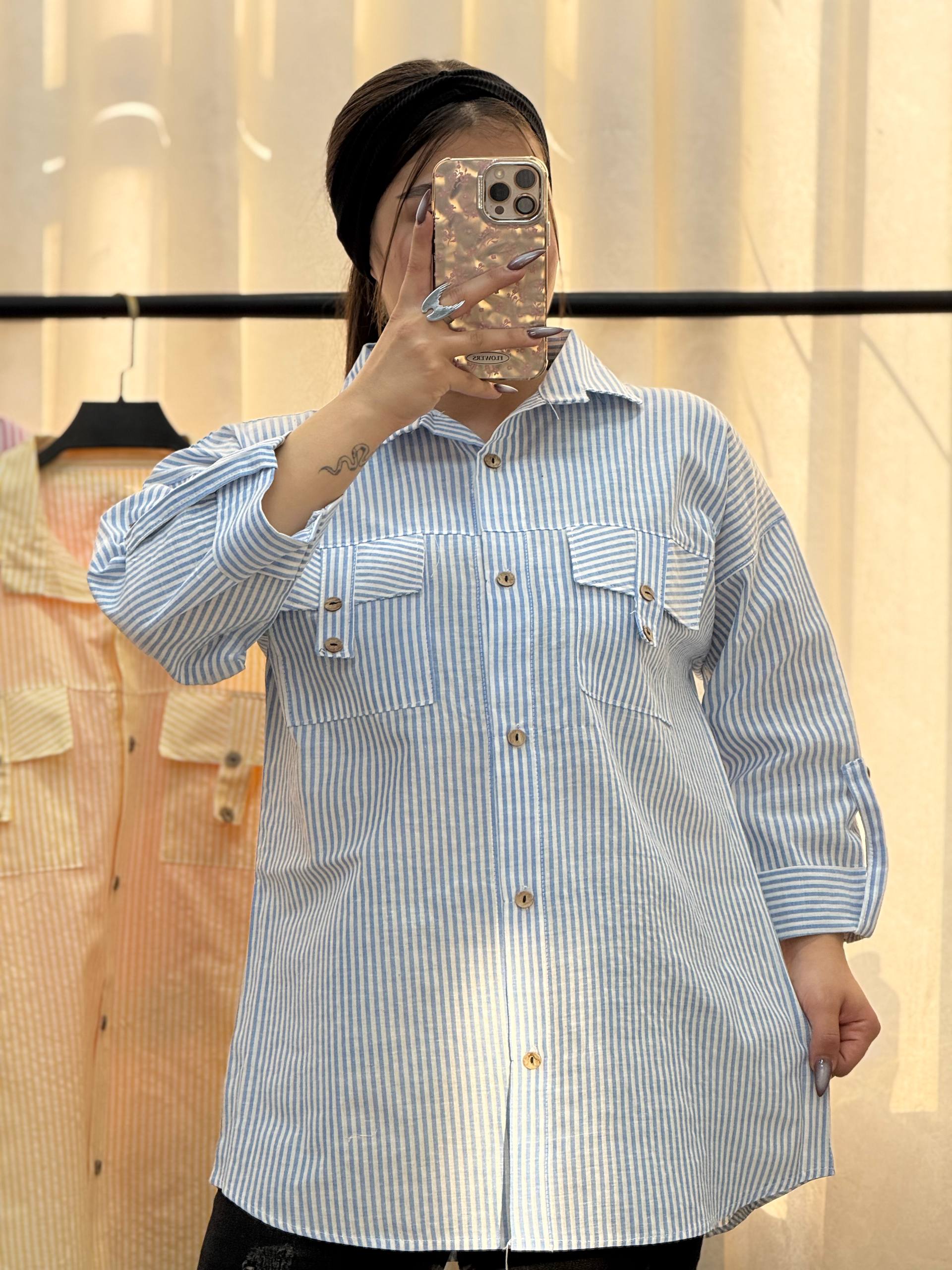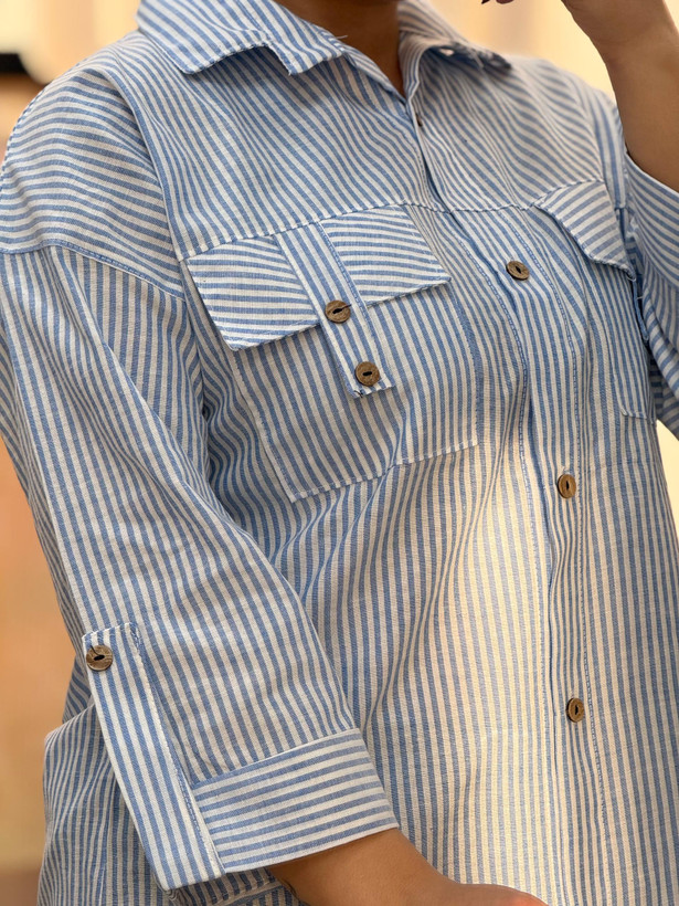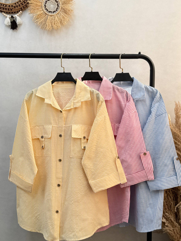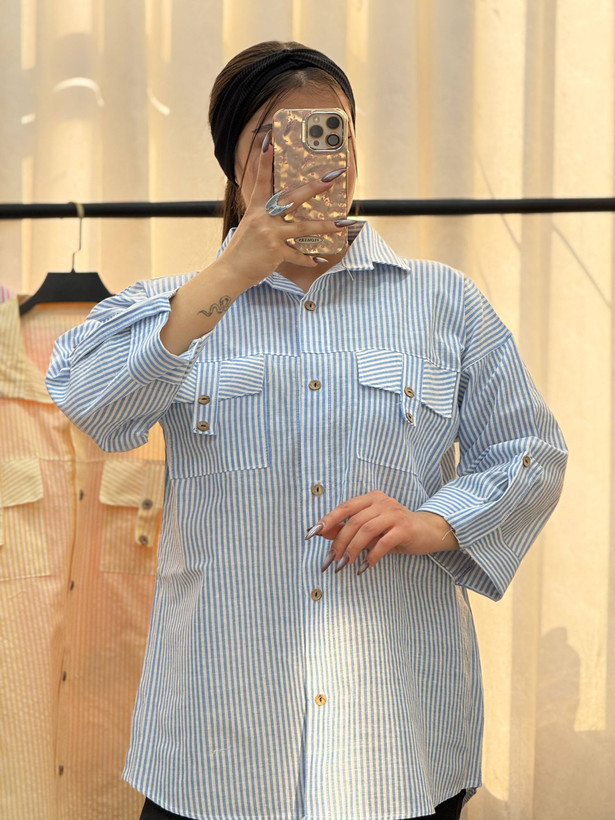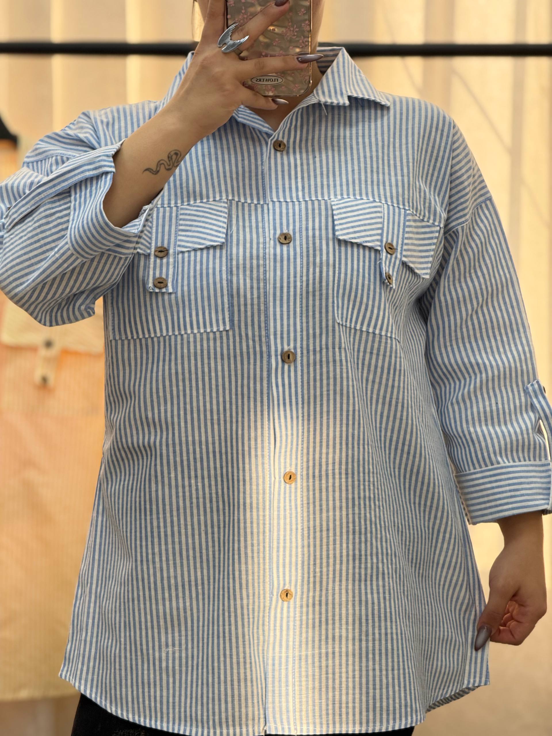 شومیز مانتویی راه راه جیب صلیبی